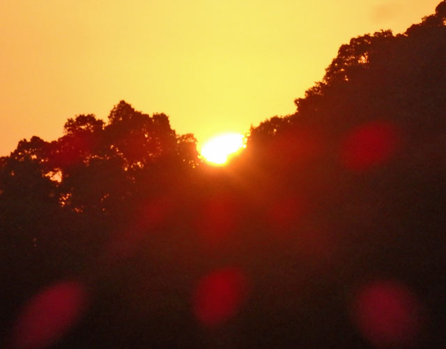 丁度お山からの日の出です。