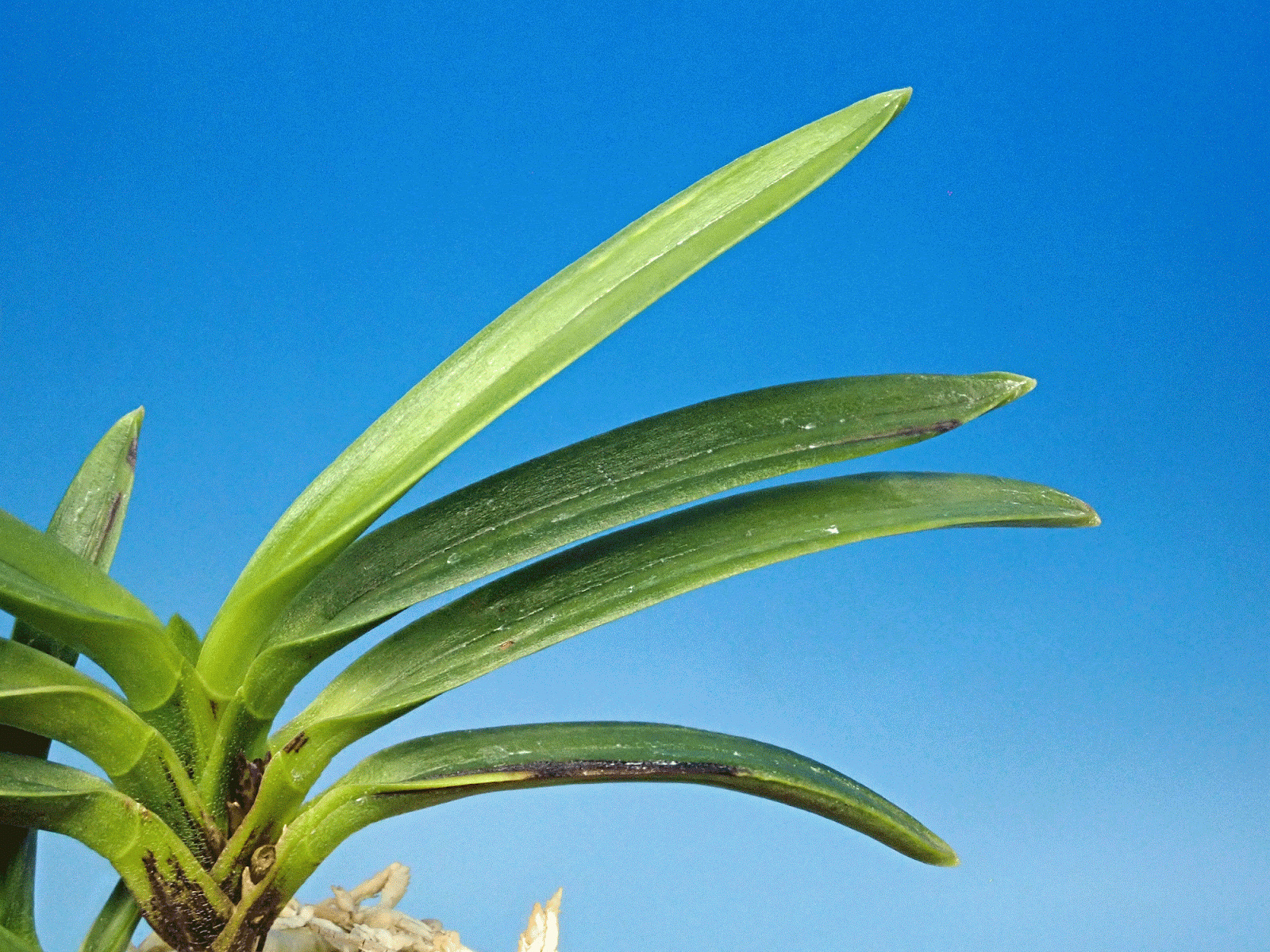 「凌雲の雪白縞を見せて!」風蘭業務では来室1名あり、珍品風蘭の鑑賞しながら蘭談議をしながら至福の時間を過ごせました。