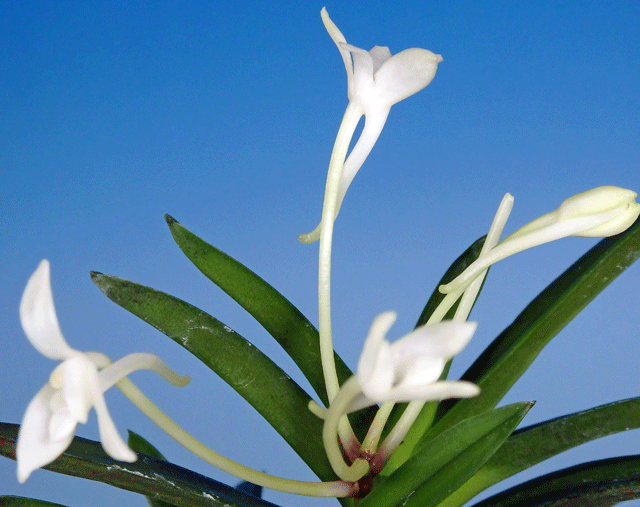 今日の風蘭 の紹介は、銘品「天玉宝の花」と高知県葉山産の無銘「葉山豆葉付変の花」です。