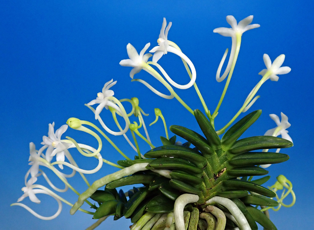 今日の風蘭の紹介は豆葉で変わった名前の風蘭の花です。