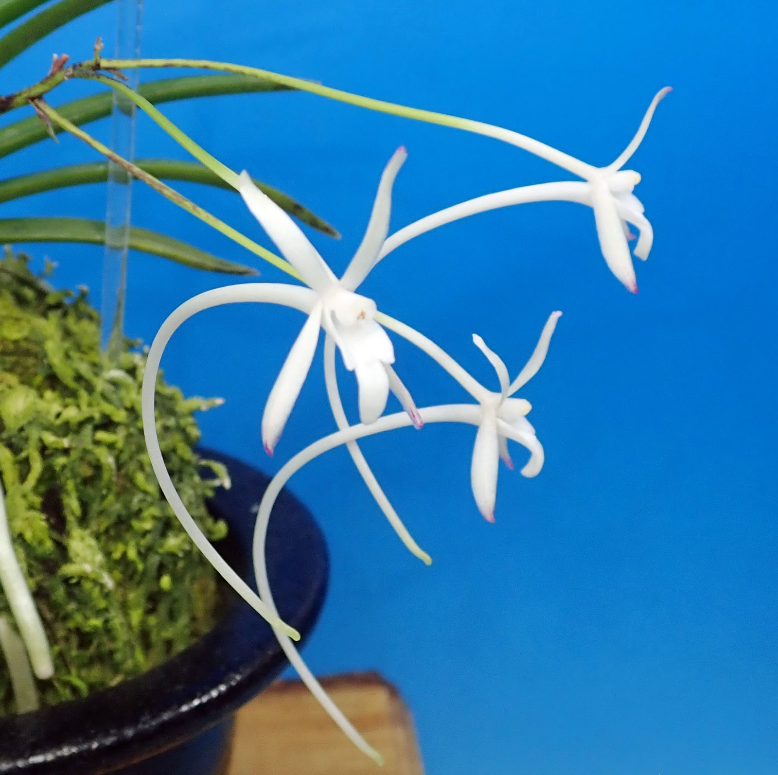 風蘭業務では、来室者は1名。珍品風蘭の観賞をしながら、蘭談義です。